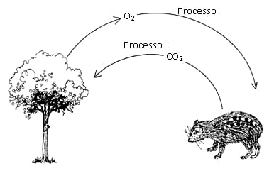 07) (UFMG) Observe esta figura, em que estão representados subprodutos de dois processos – I e II.