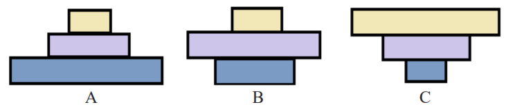 As figuras acima representam pirâmides ecológicas. Considerando a cadeia alimentar fitoplâncton –>  zooplâncton –> peixes, as pirâmides de energia, de biomassa e de números, em um dado momento, são, respectivamente,
