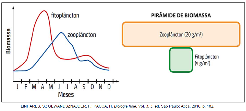 32. em um dado momento, a biomassa de zooplâncton pode ser maior que a de fitoplâncton, cuja velocidade de reprodução permite uma rápida renovação.