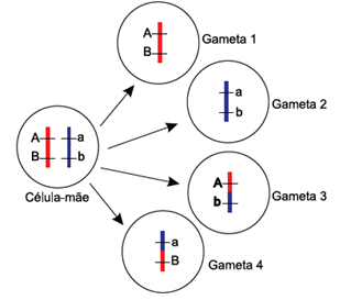 05) (Enem/2019)  Com base nos experimentos de plantas de Mendel, foram estabelecidos três princípios básicos, que são conhecidos como leis da uniformidade, segregação e distribuição independente. A lei da distribuição independente refere-se ao fato de que os membros de pares diferentes de genes segregam-se independentemente, uns dos outros, para a prole.