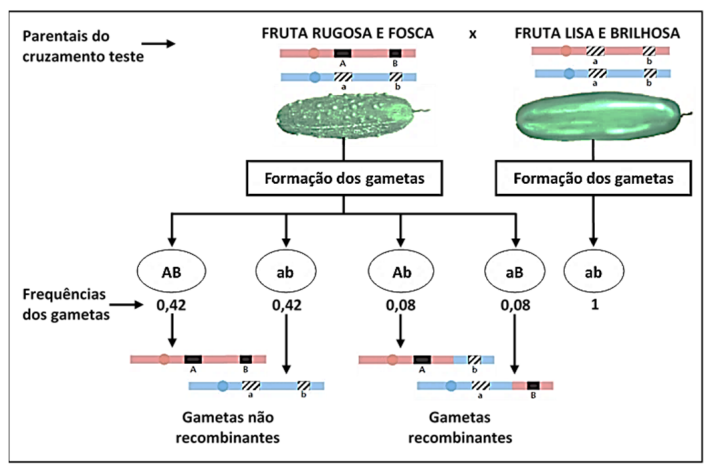 01. os genes que condicionam textura e brilho no pepino estão no mesmo cromossomo.