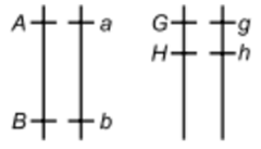 Considerando a imagem apresentada na questão, a distância entre os genes G/g e H/h é menor que a distância entre os genes A/a e B/b.