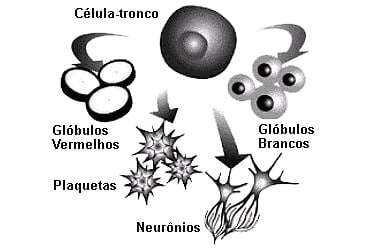 15) (PUC-MG) Observe o esquema, que mostra a diferenciação de células-tronco humanas nos elementos figurados indicados.